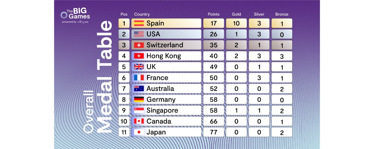 Der Sommer 2024 steht ganz im Zeichen sportlicher Wettkämpfe: Anlässlich des Starts der Spiele in Paris hat Amorana zusammen mit der Sexual-Wellness-Marke We-Vibe eine eigene Version der «Grossen O-Spiele» veranstaltet. Bereits zum zweiten Mal diesen Sommer darf sich Spanien über einen Siegertitel freuen und auch die Schweiz steht auf dem Podest, nämlich auf dem dritten Platz, dicht hinter den zweitplatzierten USA.